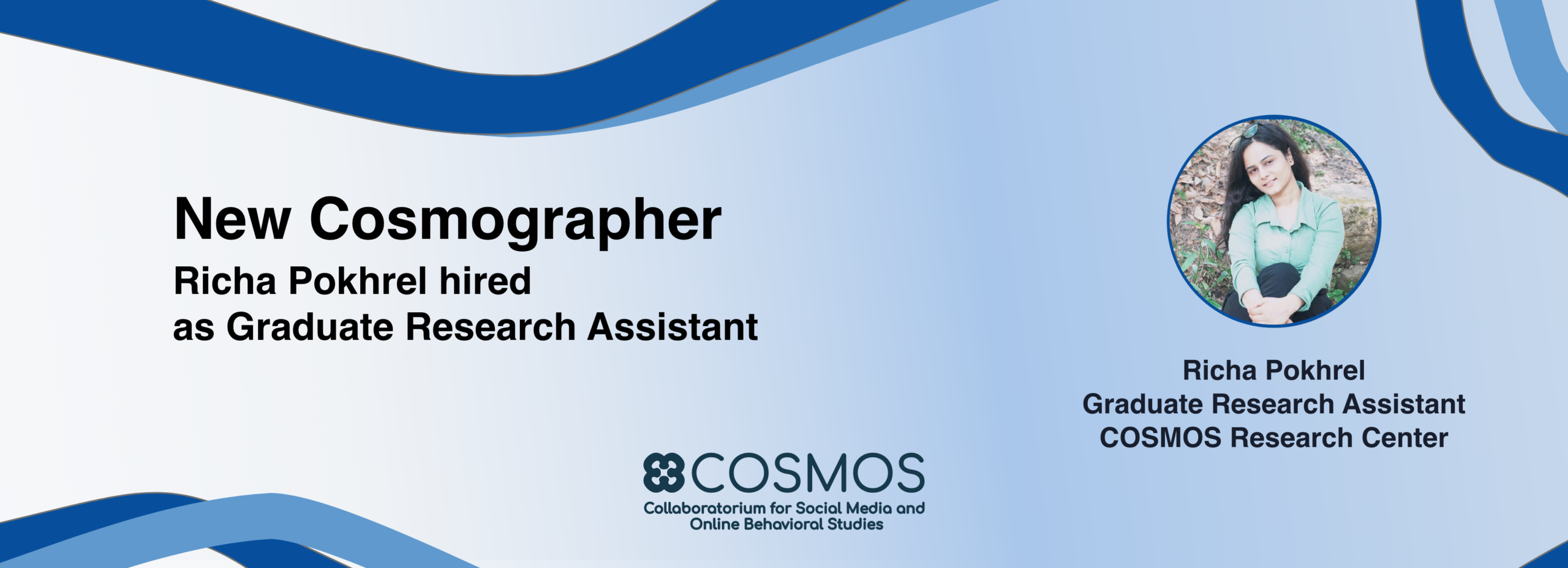 COSMOS warmly welcomes Richa Pokhrel as a new Graduate Assistant. She is a graduate of Tribhuvan University, IOE Thapathali, in Kathmandu, Nepal. At the COSMOS Research Center, Richa helps design, develop, and test social media-based information analysis systems. She also shares what inspired her to join COSMOS and discusses her aspirations and future goals in the field.